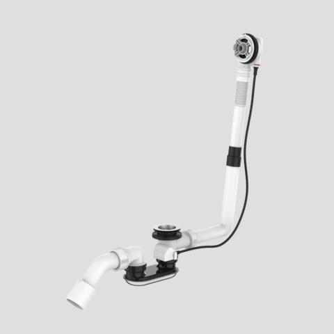 Funktionseinheit SWING + BASIC (Bauhöhe 110mm) aus Kunststoff, starrer Überlauf, Bowdenzug 650mm, mit Geruchverschluss und Ablaufbogen d: 40/50mm, ohne Bedieneinheit, mit Montageset, für Badewannen mit Drehexenterbetätigung, Verpackung im Karton geprüft nach DIN EN 274-2, überwacht