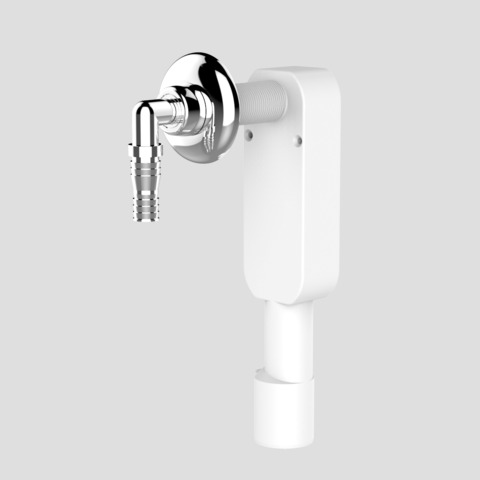 Wandeinbaugeruchverschluss für Wasch- oder Geschirrspülmaschine G 3/4-G 1x40/50mm, aus Kunststoff, mit Rosette und Anschlussnippel verchromt, Abgang d: 40/50mm, mit Befestigungsschrauben, Verpackung im Folienbeutel geprüft nach DIN 19541