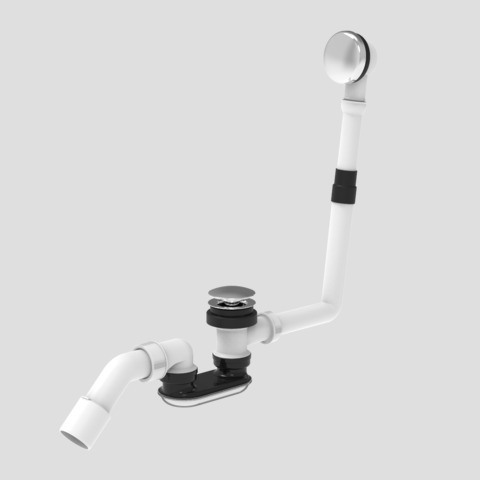 Push-Push Ab- und Überlaufgarnitur 837 (Bauhöhe 110mm) mit Bedieneinheit Push-Push verchromt, aus Kunststoff, für Badewannen, Druck-Druck-Garnitur mit Geruchverschluss, Überlaufrosette chrom und Ablaufbogen d: 40/50mm, Verpackung im Karton