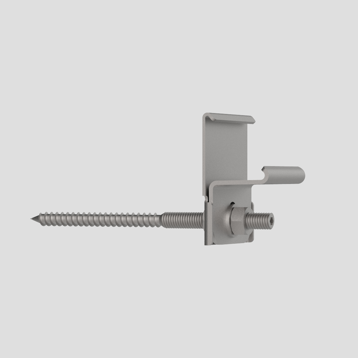 Dachschrägen-Anschluss für SANIT Trockenbausystem 996, zum Anschluss von Profilstäben an Dachschrägen-Holzkonstruktionen, bestehend aus Befestigungsblech, Befestigungswinkel und Stockschraube M8x150, Verpackung im Folienbeutel