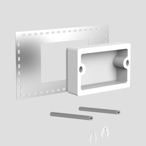 Fliesenrahmenset für Umrüstset INEO UPDATE zur Ergänzung des Renovierungssets INEO UPDATE als alternative Lösung für eine komplette Befliesung, bestehend aus Edelstahlfliesenrahmen, Fliesenlehre und Befestigungsbolzen, Verpackung im Karton