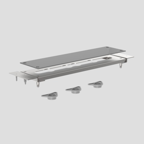 Modul für 3 und 4Loch Wannenrandarmaturen L/B/H: 680/150/20mm, zur Montage auf Fliesensockel, im Nass- und Trockenbau, zur Aufnahme von 3-4Loch Wannenrandarmaturen mit einem Schaftdurchmesser von max. 54mm, befliesbarer Armaturenträger mit verdeckter Befestigung, horizontal justierbar, Befestigungsmaterial und Montageanleitung, Verpackung im Karton
