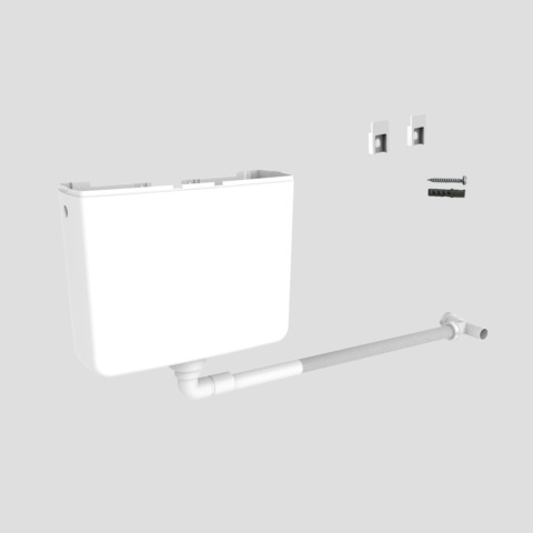 Schlauchkasten mit Rückschlagklappe für die Ableitung des Tropfwassers von Handbrausen bei Wannenrandarmaturen, Montage an Massivwänden, für waagerechte Einbindung in Überlaufrohre von Badewannenablaufarmaturen d: 32, bestehend aus Schlauchkasten mit drehbarem flexiblen Ablaufrohr, Abzweig DN 32 (d: 32), Rückschlagklappe, Befestigungsmaterial und Montageanleitung, Verpackung im Karton