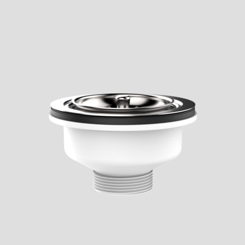Körbchenventil G3 1/2, verschließbar Ventilunterteil Kunststoff, Ablauf d: 114mm für einen Lochdurchmesser von 85mm, Ablauf und herausnehmbares Körbchen aus Edelstahl, für Spülen mit einer Wanddicke bis 14mm, Verpackung im Karton