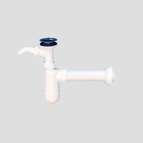 Flaschengeruchverschluss 609/1 W, G1 1/4 x 40mm aus Kunststoff, mit Geräteanschluss, Ablauf aus Edelstahl und Stopfen, Abgang d: 40mm mit Kegelringtülle, Verlängerungsrohr 200mm und Rosette, Verpackung im Folienbeutel geprüft nach DIN EN 274, überwacht
