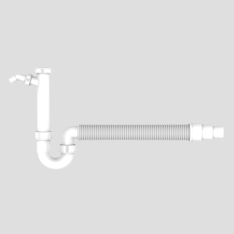 Rohrgeruchverschluss G1 1/2 x 40/50mm mit flexiblem Schlauch aus Kunststoff, mit Geräteanschluss, flexibler Schlauch gesteckt, Abgang d: 40 und d: 50mm, Verpackung im Folienbeutel