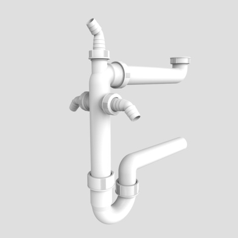 Raumschaffer G1 1/2 x 40mm aus Kunststoff, Raumsparabgang mit Rohrgeruchverschluss und 3 Geräteanschlüssen, Verpackung im Folienbeutel geprüft nach DIN EN 274, überwacht