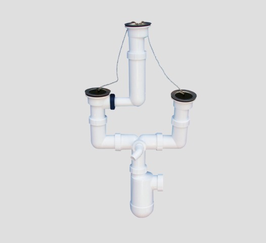 Ab- und Überlaufgarnitur G1 1/2 x 40 x 210-250mm mit Flaschengeruchverschluss aus Kunststoff, Ablauf aus Edelstahl, Stopfen, Kugelkette und Kettenhalter, mit Geräteanschluss, für Doppelspülen, Verpackung im Folienbeutel