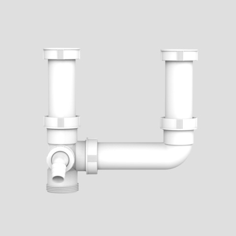 Ablaufverbindung G1 1/2 x G1 1/2 x max. 285mm aus Kunststoff, mit exzentrischem Abgang, Geräteanschluss und 2 Anschlussrohren 120mm, für Doppelspülen, Verpackung im Folienbeutel