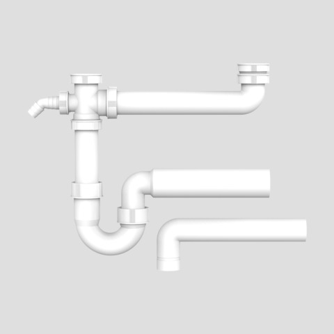 Ablaufverbindung G1 1/2 x 50 x max. 295mm mit Rohrgeruchverschluss aus Kunststoff, mit exzentrischem Abgang, Geräteanschluss und Höhenausgleichsstück, mit Verlängerungsrohren d: 40 und d: 50, Verpackung im Foliebeutel geprüft nach DIN EN 274, überwacht
