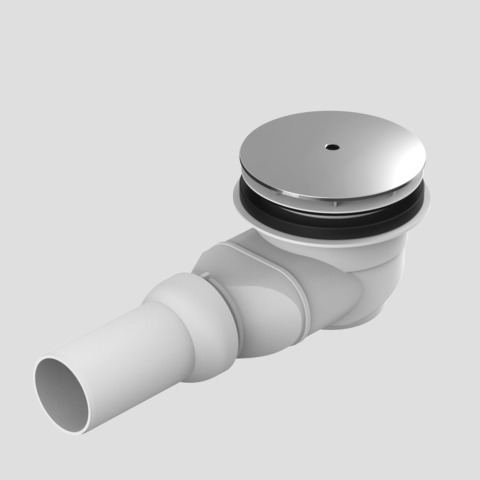 Duschablauf 823/90 W, waagerechter Abgang aus Kunststoff, mit verchromter Abdeckplatte mit Harrsieb, herausnehmbarem Geruchverschlusseinsatz, Flachdichtung, Abgang mit verstellbarem Kugelgelenk und Ablauf d: 50mm, für Duschwannen mit Ablaufloch d: 90mm, Ablaufleistung 0, 7L/s nach DIN EN 274, Verpackung im Karton geprüft nach DIN EN 274