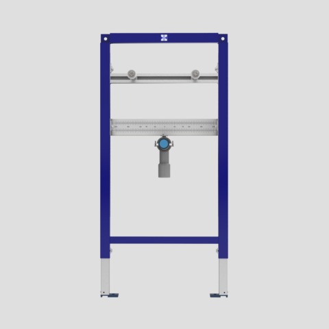 Waschtisch-Element INEO für Einlocharmaturen H/B/T: 985/525/75mm selbsttragende, pulverbeschichtete Stahlrahmenkonstruktion, zur Trockenverkleidung, Einbau vor Massivwand, in Leichtbau-Ständerwand u. v. m. , 4 Befestigungspunkte, komplett vormontiert, inklusive selbsthemmende Füße mit verstellbaren Fußplatten und Befestigungsmaterial, universell einsetzbar für Waschtische und Handwaschbecken, Verstellbereich Füße von Rohfußboden bis OKFFB: 0-200mm, Tiefenverstellung Vorderkante Element: 135-205mm (bei Verwendung von Wandhaltern Art. -Nr. 17. 257. 00. . T000), mit mehrfach verleimter Schichtholzplatte und Stichmaßskalierung zur freien Positionierung von Trinkwasserrohr-Systemwandscheiben, mit 2 Gewindebolzen M10 inklusive Bauschutz und Waschtischbefestigung, mit Universalablaufbogen DN 50 (d: 50)/DN 40 (d: 40) inklusive Gummimanschette für Geruchverschluss-Ablaufstutzen DN 40 (d: 40)/DN 32 (d: 32), Bauschutz und schallgedämmter Ablaufschelle, Verpackung im Karton