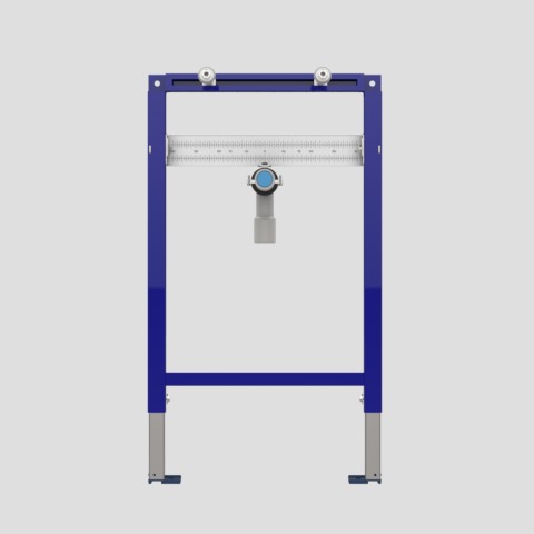 Waschtisch-Element INEO für Einlocharmaturen H/B/T: 820/525/75mm selbsttragende, pulverbeschichtete Stahlrahmenkonstruktion, zur Trockenverkleidung, Einbau vor Massivwand, in Leichtbau-Ständerwand u. v. m. , 4 Befestigungspunkte, komplett vormontiert, inklusive selbsthemmende Füße mit verstellbaren Fußplatten und Befestigungsmaterial, universell einsetzbar für Waschtische und Handwaschbecken, minimales Stichmaß der Eckventile 80mm, Verstellbereich Füße von Rohfußboden bis OKFFB: 0-200mm, Tiefenverstellung Vorderkante Element: 135-205mm (bei Verwendung von Wandhaltern, Art. -Nr. 17. 257. 00. . T000), mit mehrfach verleimter Schichtholzplatte und Stichmaßskalierung zur freien Positionierung von Trinkwasserrohr-Systemwandscheiben, mit 2 Gewindebolzen M10 inklusive Bauschutz und Waschtisch-Befestigung, mit Universalablaufbogen DN 50 (d: 50)/DN 40 (d: 40) inklusive Gummimanschette DN 40 (d: 40)/DN 32 (d: 32), Bauschutz und schallgedämmter Ablaufschelle, mit Gewindestab M8 x 80mm, Verpackung im Karton