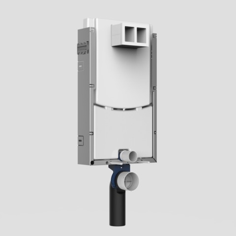 WC-Montageelement INEO IN für Wand-WC mit Befestigungsabstand 180/230mm, mit kleiner Revisionsöffnung, Betätigung von vorn, zum Ein- oder Vormauern vor Massivwand, bestehend aus einem verzinkten u-förmigen Element mit 6 Befestigungslaschen, WC-Befestigungsmaterial M12, mit vormontiertem schwitzwasserisolierten SANIT UP-Spülkasten (CC-121-S-FO-2V-2C) mit 2-Mengenspülung (7, 5-4, 5L / 4-2L), Werkseinstellung 6 und 3Liter, Übertragung der Tastenfunktion über flexible Kabeltechnik zur INEO Ablaufgarnitur, Verbindung zur Betätigungsplatte über Dreh-Klick-Verbindung, SANIT Füllventil Armaturengruppe I, 2-teiliges Eckventil-Anschlussset R 1/2, Befestigungsschelle für Ablaufbogen 4-fach verstellbar, WC-Anschlussbogen 90Gr DN 90 (d: 90) mit Übergangsmuffe DN 90 (d: 90)/ DN 100 (d: 110) und Bauschutz, WC-Anschlussgarnitur DN 90 (d: 90), Bauschutzkasten für Revisionsöffnung kürzbar, flexibler Schlauch zum Füllventil von Hand verschraubbar, Befestigungsmaterial komplett, mit Füllblock, ohne Fußstützen, ohne Betätigungsplatte, Verpackung im Karton im Karton UP-Spülkasten geprüft nach DIN EN 14055, Armaturengruppe I